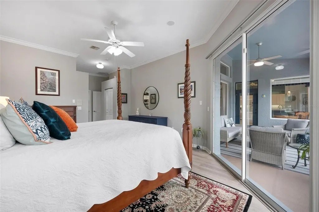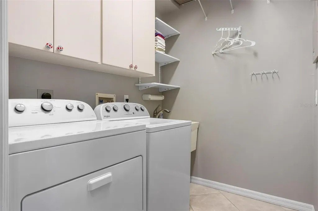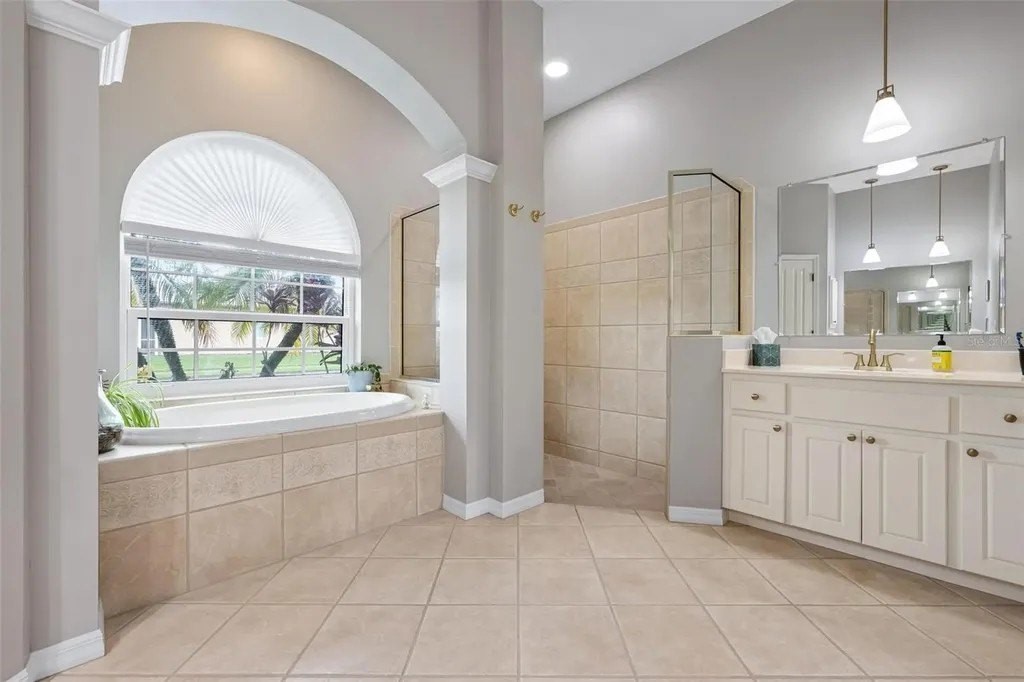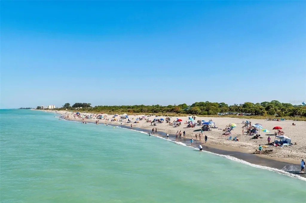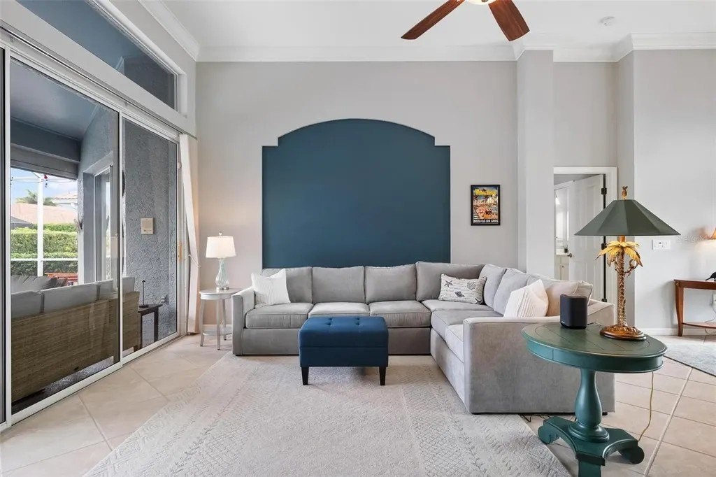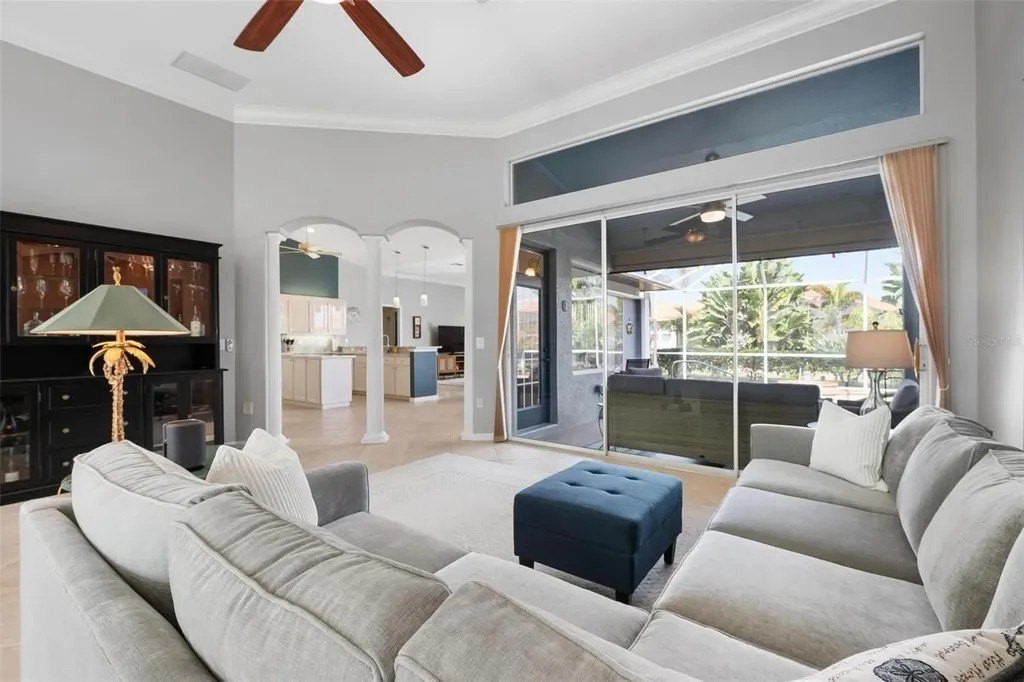 Visually striking from the moment you arrive, this exceptionally well-cared-for Aruba 3 by J & J Homes showcases outstanding curb appeal and thoughtful updates throughout. This 3-bedroom, 2-bath pool home with an oversized 3-car garage welcomes you through double leaded-glass entry doors into a light-filled foyer with soaring 12-foot ceilings, crown molding, and a wall of glass overlooking the lanai and pool. Architectural details abound, including tall crown molding, transom windows, wall niches, and refined finishes that elevate every space. The desirable split floor plan offers privacy for family and guests, while large-format diagonal porcelain tile enhances the living areas and vinyl laminate flooring in the bedrooms ensures a clean, carpet-free lifestyle. The expansive living spaces open effortlessly to the outdoors through three sets of 8-foot sliding glass doors in the living room, great room, and primary suite-creating a seamless indoor-outdoor experience. At the heart of the home, the open island kitchen impresses with beautiful granite countertops and a charming dinette framed by an aquarium window overlooking the pool and lush landscaping. The spacious primary suite features custom closet built-ins and a generous bath with dual vanities and a walk-in shower. Outdoor living shines within the covered lanai and caged pool, surrounded by native tropical foliage-your own private retreat. Major updates include a new barrel tile roof in 2025 with transferable warranty, fresh interior and exterior paint, and full storm protection with impact glass front windows and hurricane shutters throughout. Pride of ownership is evident at every turn, with a full list of upgrades available. Centrally located just minutes from beaches, historic Downtown Venice, Downtown Wellen Park, and abundant shopping and dining, this home is set within a community with a modest HOA and no CDD fees, ensuring lasting beauty and exceptional value.